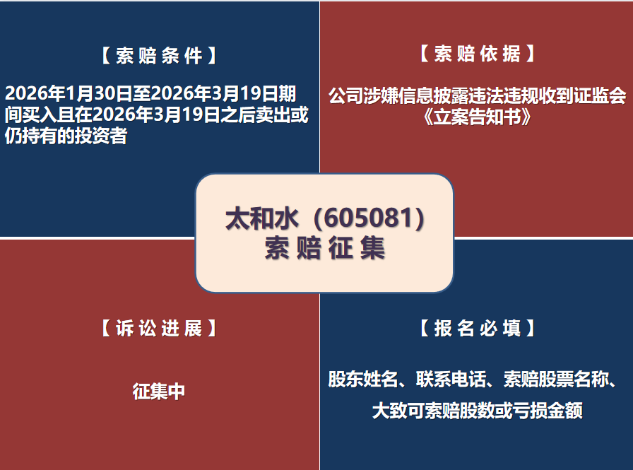 太和水(605081)索赔征集